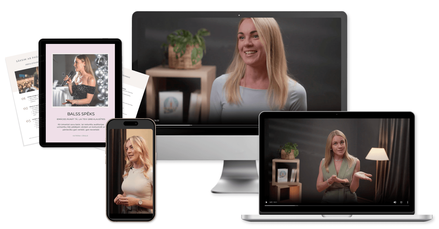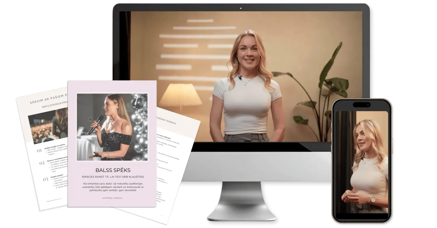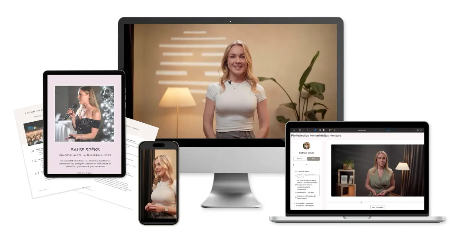 8 soļu praktiska treniņsistēma vadītājiem un ekspertiem. Tu apgūsi struktūru, balsi un klātbūtni, lai zinātu, kā sevi sagatavot pārliecinoši uzstāties jebkur un jebkam.
